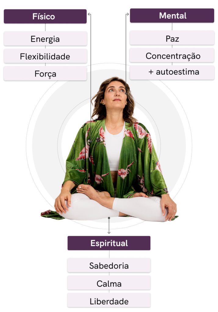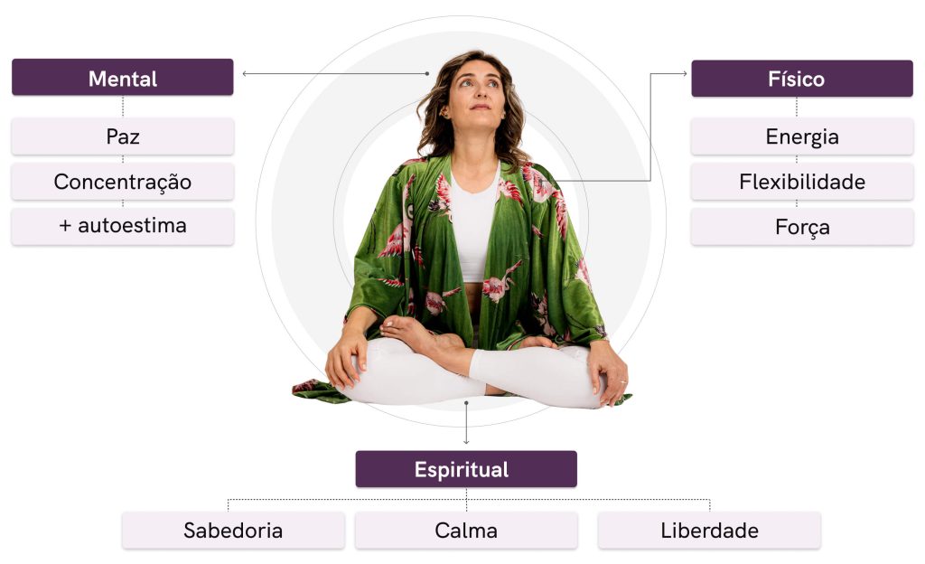 O curso inclui aulas práticas de yoga, meditações e exercícios semanais.